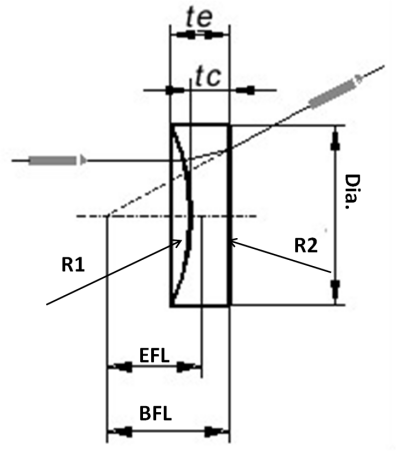 平凹透鏡是一面是球面,一面為平面的,中間也薄于兩邊。它們具有負(fù)的焦距,被用于發(fā)散一束平行光。